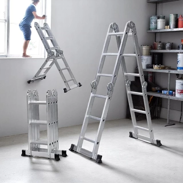 حسّن مشاريعك المنزلية والعملية مع هذا السلم الألومنيوم متعدد الاستخدامات! 🏡🔧 مصمم لوضعيات متعددة، ويمكن تحويله بسهولة إلى سلم مستقيم، سلم متدرج، سقالة، وغيرها. مصنوع من الألومنيوم عالي الجودة، خفيف الوزن، متين، ومقاوم للصدأ. مثالي للاستخدام الداخلي والخارجي. 🌦️🔝