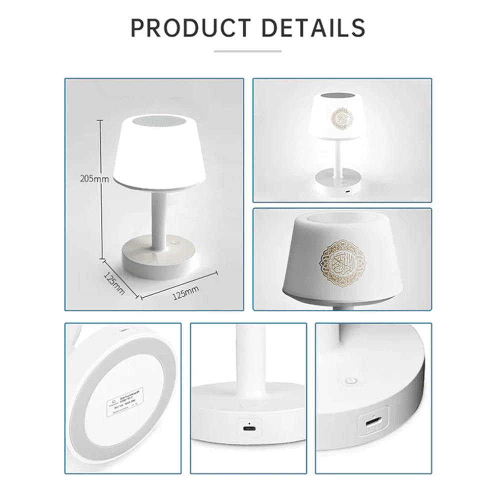 A multi-functional Bluetooth Quran speaker that doubles as a touch control color-changing table lamp, designed specifically for Muslims, with preloaded Quranic recitations and translations in various languages